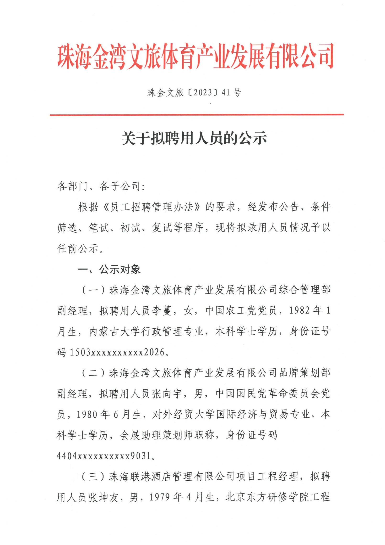 珠金文旅〔2023〕41號(hào) 關(guān)于擬聘用人員的公示