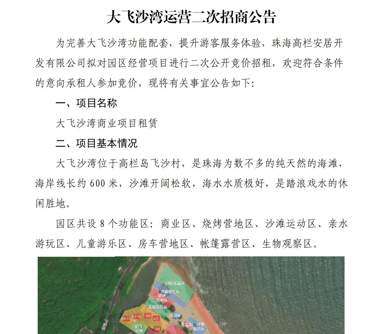 大飛沙灣運(yùn)營二次招商公告