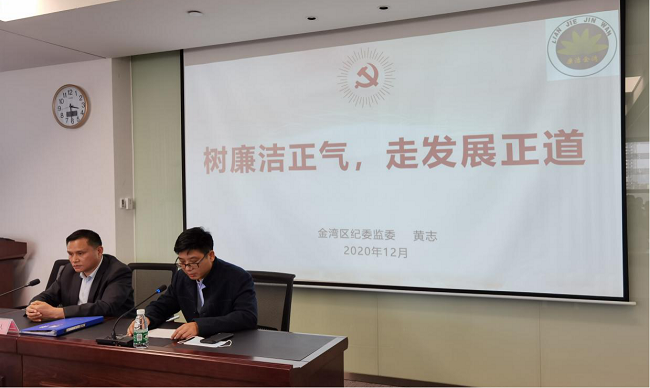 為筑牢廉潔思想防線,壓實(shí)“一崗雙責(zé)”,12月2日,聯(lián)港公司黨支部特邀請(qǐng)區(qū)紀(jì)委副書記、監(jiān)委副主任黃志為公司領(lǐng)導(dǎo)干部及全體黨員進(jìn)行了廉政警示教育專題講座。