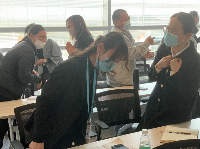 本次課程分為禮儀與情商、職場印象管理和有效溝通技巧三部分。王彥群老師先用生動(dòng)幽默的語言講授了禮儀與情商的深層蘊(yùn)意,禮儀的根本是尊重-尊重他人、尊重自己、尊重所有人,在與人交往中要有主動(dòng)意識(shí),懂得換位思考。之后王彥群老師用現(xiàn)場教學(xué)的方式,向?qū)W員們傳授商務(wù)著裝技巧及職場舉止注意要點(diǎn),以提升職場印象。在最后的溝通技巧環(huán)節(jié)中,王彥群老師通過小組展示練習(xí)和互動(dòng)游戲,讓學(xué)員體會(huì)“問答贊”、“說聽答”的重要性,從而掌握有效溝通的技巧。在3個(gè)小時(shí)的培訓(xùn)過程,現(xiàn)場氣氛活躍熱烈,參訓(xùn)學(xué)員在高漲的學(xué)習(xí)氛圍中掌握了許多實(shí)用性技巧的禮儀知識(shí),效果顯著,獲得了參訓(xùn)學(xué)員的一致好評(píng)。