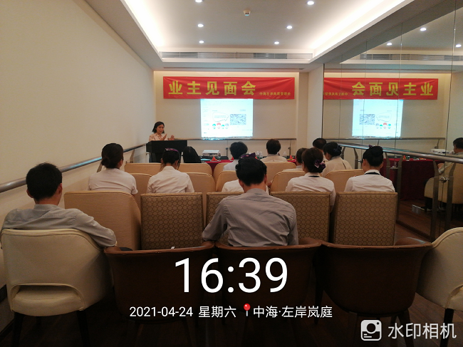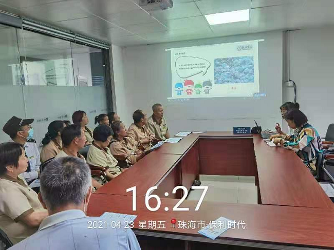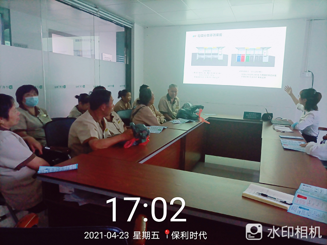 4月23日、24日下午聯(lián)港公司垃圾分類項(xiàng)目宣講員到保利時(shí)代、中海左岸嵐庭小區(qū)開展垃圾分類專題培訓(xùn),保利時(shí)代、中海左岸嵐庭物業(yè)管理層和保潔隊(duì)伍等共計(jì)50人,分成兩批參訓(xùn)。聯(lián)港公司垃圾分類項(xiàng)目宣講員受邀前往現(xiàn)場作《垃圾分一分金灣美十分》主題培訓(xùn)。