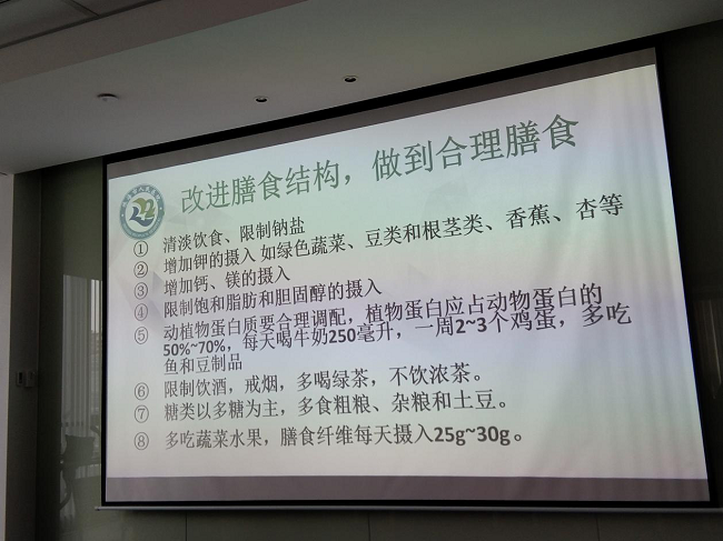 本次講座特邀珠海市人民醫(yī)院預(yù)防保健部卓鳳堅(jiān)副主任主講。講座以“心腦血管的預(yù)防及營養(yǎng)調(diào)理”為主線,講解了高血壓、冠心病的診斷、發(fā)病的危險(xiǎn)因素、并發(fā)癥及預(yù)防心腦血管疾病相關(guān)聯(lián)的知識點(diǎn)。并從不良飲食、休息、心理帶來的危害到改變膳食結(jié)構(gòu)、合理均衡飲食、戒煙限酒、適量運(yùn)動(dòng)、心理調(diào)適等方面均做了詳細(xì)講解,闡述了遠(yuǎn)離心腦血管疾病,保證身體健康的要點(diǎn)及方法。