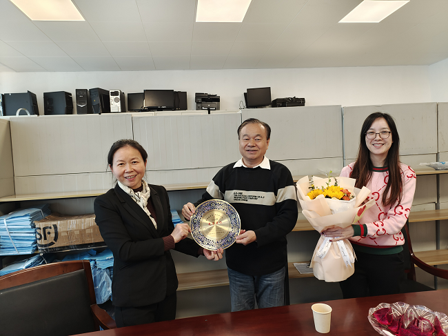 歡送會中,聶曉琴和鄺健苗同志分別為理輝同志獻(xiàn)上鮮花及退休紀(jì)念品,各同事回顧了一起工作的日子,并合影留念。